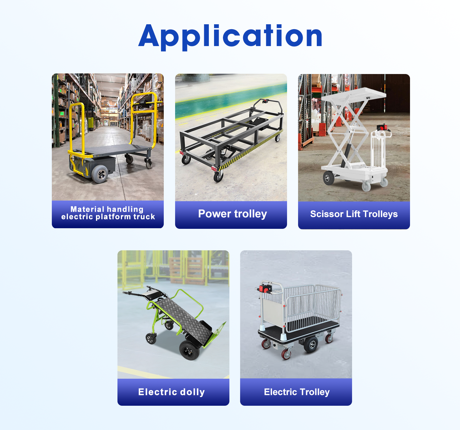 Electric Trolleys and Platform Trucks: This drive kit can be used effectively to convert conventional trolleys and platform trucks into electric-powered equipment for maximum efficiency in material transport.